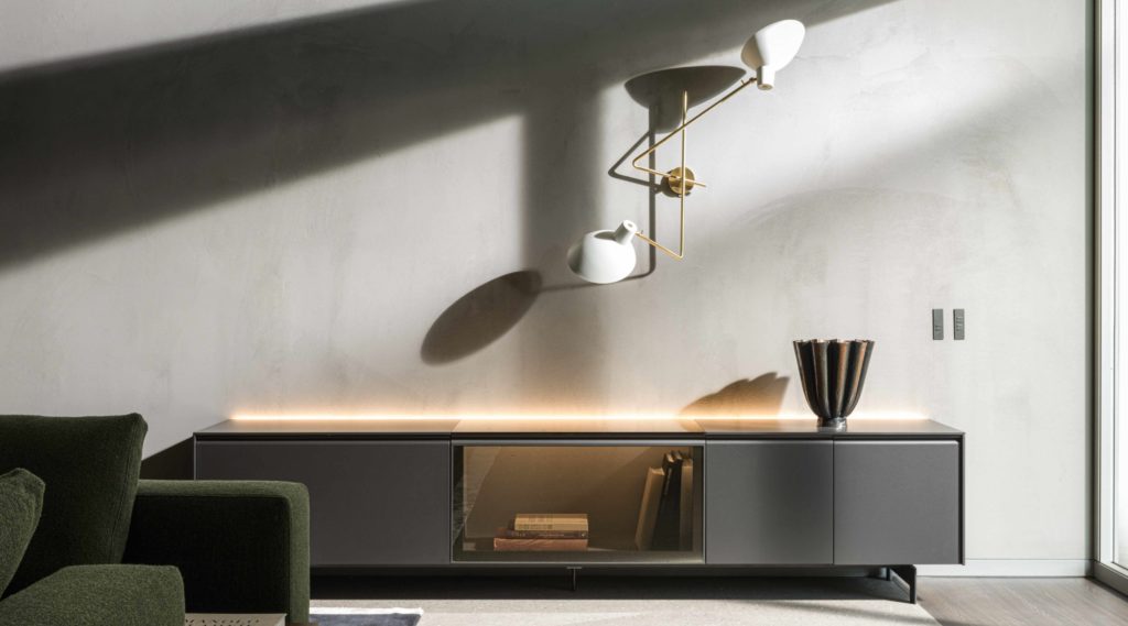 Lo spazio suggestivo presenta la nuova Collezione, dove gli ambienti si susseguono in un dialogo armonioso fra architettura e design, attraverso spazi domestici dove i nuovi design si intrecciano ai i più iconici pezzi di arredamento. Per rendere la scena perfetta, più viva e reale Molteni&C | Dada ha scelto le placche di comando elettrico e i relativi accessori di PLH.