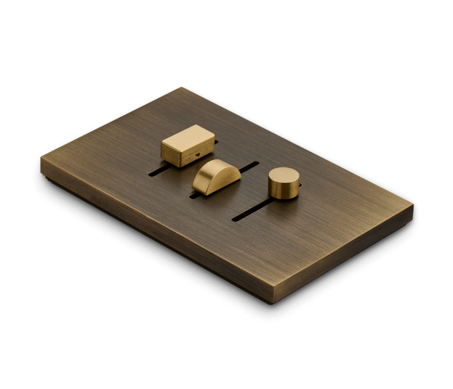 Le placche MakeUp si prestano a una amplissima varietà di combinazioni tecnico-estetiche. Materiali, trattamenti e finitura dei comandi, possono essere tono su tono o a contrasto. Incisioni laser o stampe con vernici UV permettono di caratterizzare la funzione del comando o aggiungere decori.